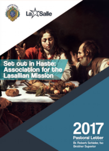 Brother Superior General Robert Schieler, FSC, has released this pastoral letter to the Brothers, entitled “Set out in Haste: Association for the Lasallian Mission.” In it, he encourages Brothers to be active participants in the evolving story of Association for Mission. He writes that “Brothers must create new dynamics of encounter and conversation with one another and with our Partners. We must take the lead in being signs of hope for the future of the Lasallian mission” (page 6).