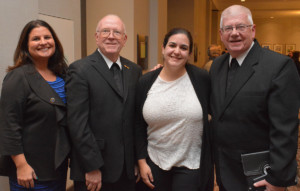 Alana Parenteau, left, with DENA Auxiliary Visitor Brother Thomas Casey, FSC, Ashley Carlino, La Salle Academy, Providence, and DENA Visitor Brother Dennis Lee, FSC.