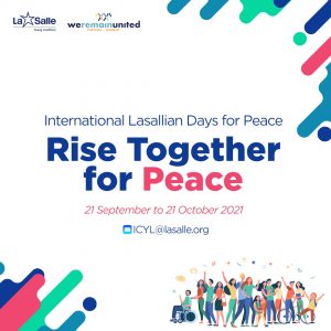 The 2021 International Lasallian Days for Peace (ILDP) will begin on September 21 (the United Nations’ sanctioned International Day of Peace) and will run through October 21. The theme for this 15th annual event is “Rise Together for Peace!’’ The theme was developed by a group of Young Lasallians commissioned by the International Coordinator of Young Lasallians. A series of global online activities, including sessions, discussions and celebrations, for this year’s ILDP are being planned. More information and resources will be shared as they become available. ILDP is an initiative of the International Council of Young Lasallians (ICYL). Learn more about Young Lasallians >