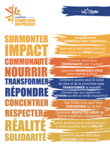 Lasallians are invited to explore and celebrate the theme in their ministries and communities. Lasallian Reflection 5 accompanies the theme and encourages Lasallians to respond to the challenges facing the world today.