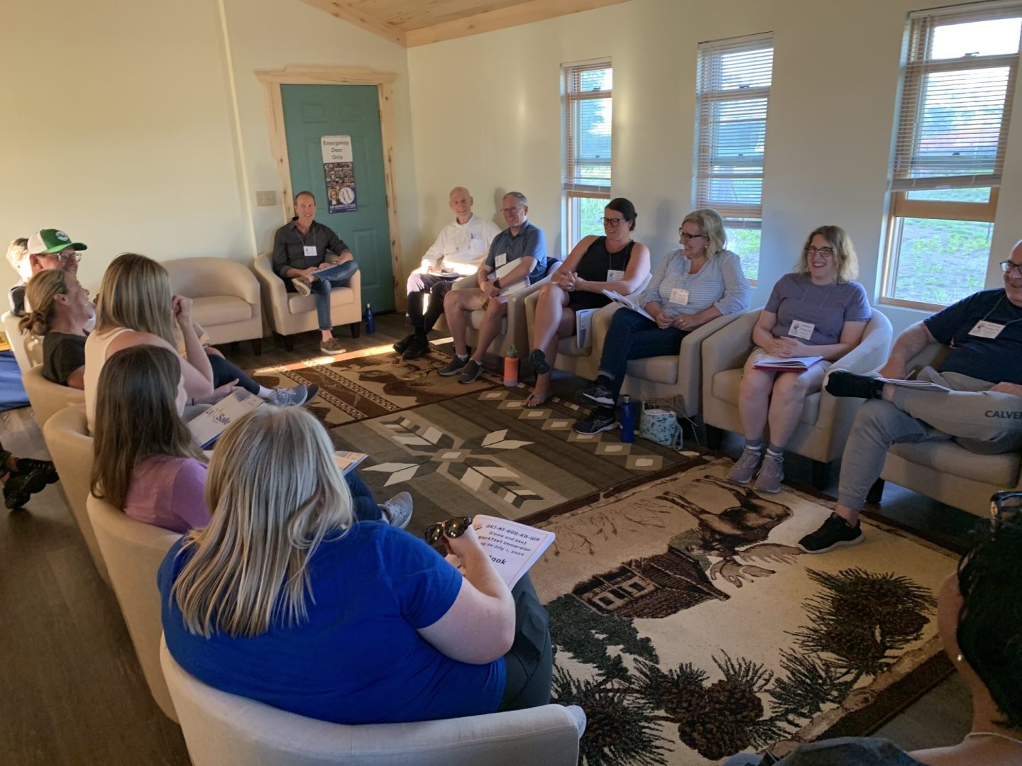Thursday morning started with prayer and reflection before heading to a local sweat lodge. Participants and Blackfeet members took part in a traditional sweat lodge ceremony, consisting of offered prayer intentions, multiple sessions that increased in temperature and communal vulnerability, all in a pitch-black space. Afterwards, participants were led by a park ranger on a hike throughout nearby Glacier National Park. The evening allowed participants to gather, work on their land acknowledgement projects and prayerfully reflect on the day.