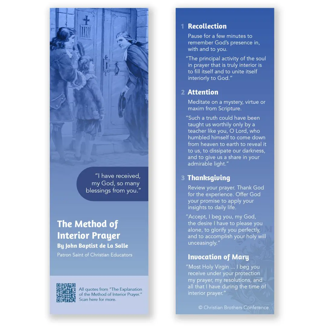 An excellent prayer resource, this laminated bookmark offers a succinct summary of De La Salle’s Method of Interior Prayer. Available in increments of 50.