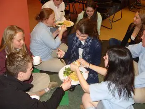 La Salle is gathering donations for Rongai Agricultural and Technical School in Rongai, Kenya through homeroom collections, faculty/staff lunches, and a new “Hunger Banquet” where students were randomly given color-coded tickets that determined how much food they received—from a full meal off of plates to rice and water to be eaten on floor—to demonstrate variations throughout the world. Within a few minutes of receiving the meals, the students with the full plates shared their food with the students on the floor. Read more here >