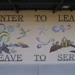 The 51 seniors put in 40 hours brainstorming, drafting, and creating the 21’ x 8’ mural of steel and recycled stained glass. They revealed their final product April 3, which is displayed on the inside wall of the campus courtyard. The theme of the mural is “Enter to Learn, Leave to Serve,” one of the themes that guides the students of San Miguel and all Lasallians.