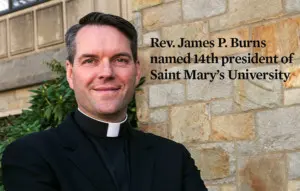 Saint Mary’s University of Minnesota (SMUMN) in Winona, Minnesota, has announced the appointment of Reverend James P. Burns, IVD, Ph.D., as the 14th president of the university effective July 9, 2018.